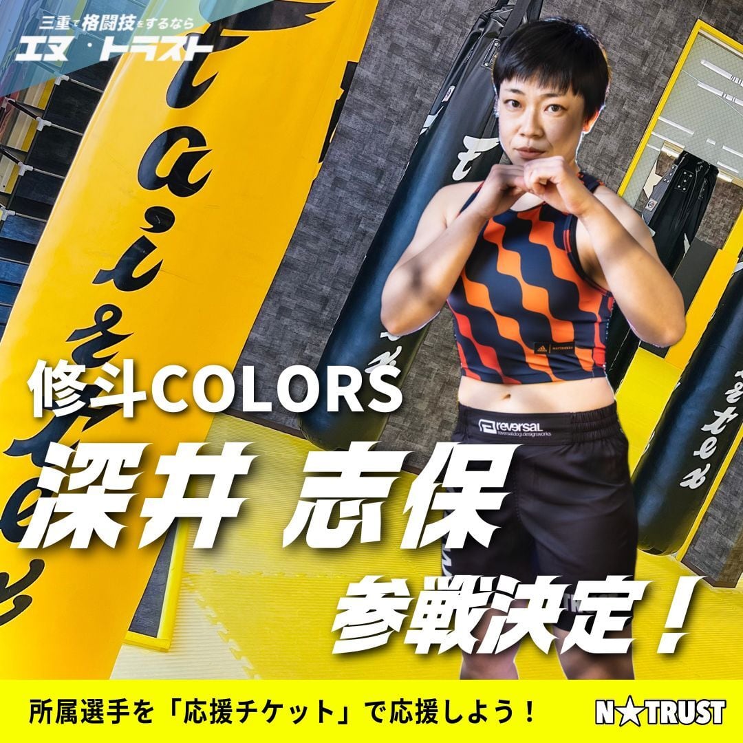 1/18(日)プロフェッショナル修斗COLORS at 東京ニューピアホール大会でプロデビュー戦が決定したN★TRUST所属の〝深井志保〟選手の応援チケットです。