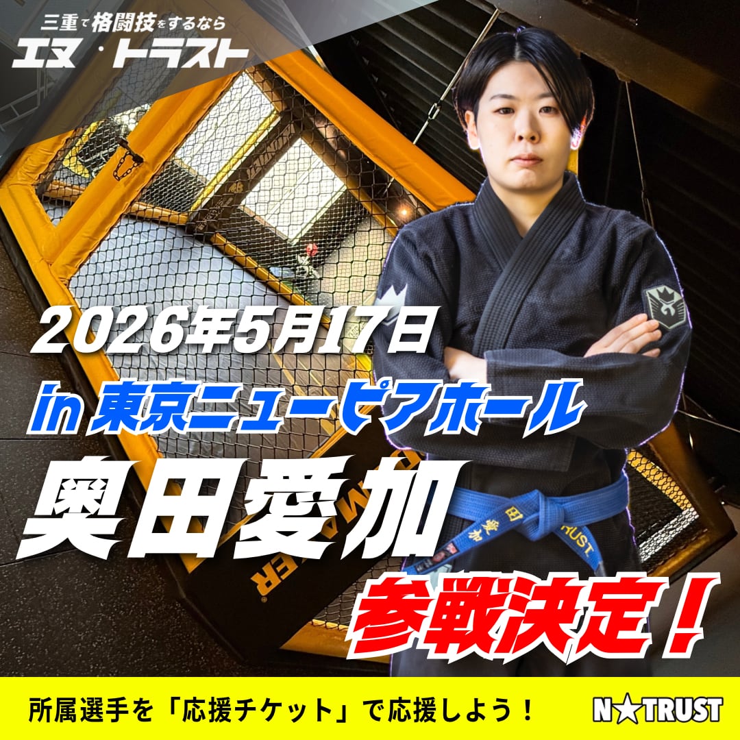 2026.5.17(日)プロフェッショナル修斗 東京ニューピアホール大会【第1部】でプログラップリングマッチが決定したN★TRUST所属の〝奥田愛加〟選手の応援チケットです。